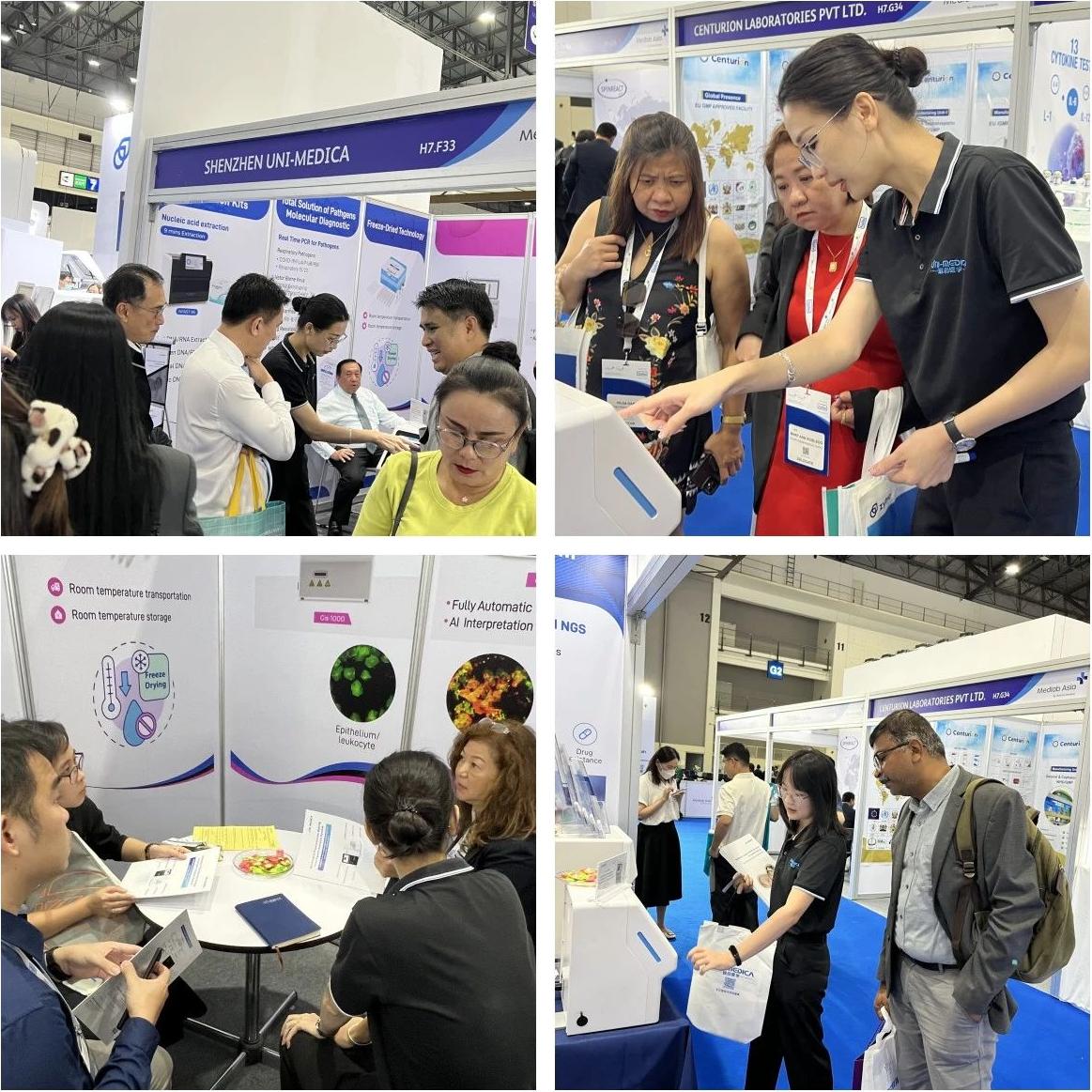 With Medlab Asia as the platform, Uni-medica brought a full line of products to the exhibition, and the series of products such as Fluorescent Quantitative PCR platform, Total Solution of Tuberculosis, High Throughput Sequencing platform, Fluorescence Staining platform and many other important products have been highly praised and recognized by customers