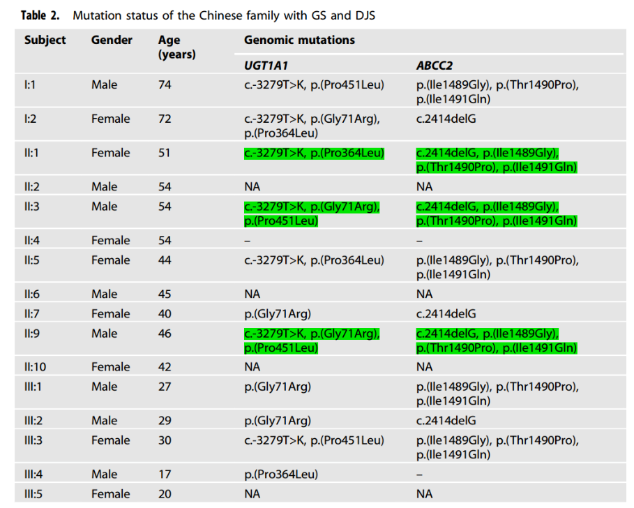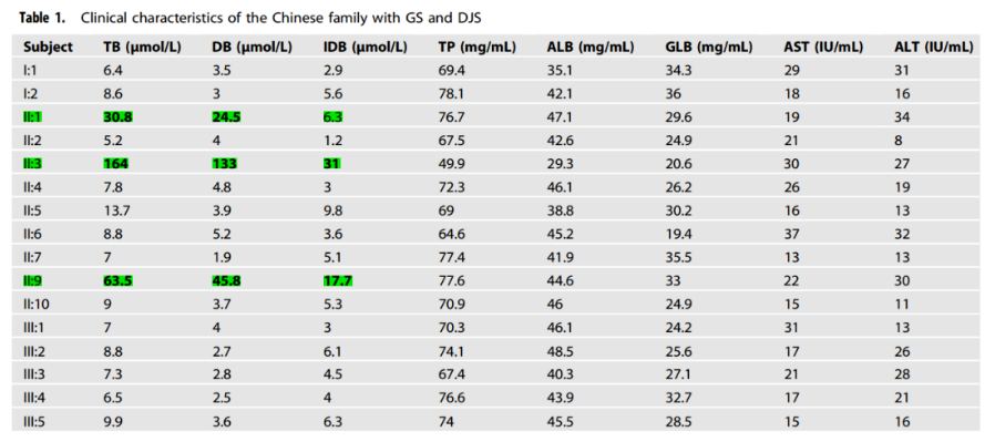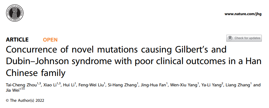 Recently, a study entitled "Concurrence of novel mutations causing Gilbert's and Dubin–Johnson syndrome with poor clinical outcomes in a Han Chinese family" published in the Journal of Human Genetics reported a rare case of Gilbert syndrome combined with Dubin -Families with hyperbilirubinemia due to Johnson syndrome.