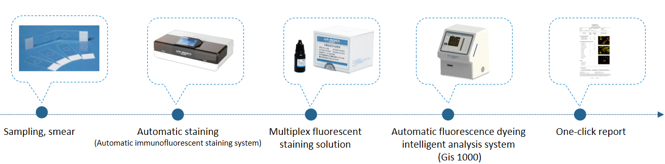 Automatic fluorescence dyeing intelligent analysis system (Gis-1000) adopts artificial intelligence technology, which can scan epithelial cells, white blood cells, red blood cells, sperm cells, lactobacillus, bacillus, gonococcus, streptococcus, fungi, spores, hyphae, clue cells, trichomonas and other tangible substances at the same time, and can perform artificial intelligence interpretation on the density, diversity and cleanliness of flora.