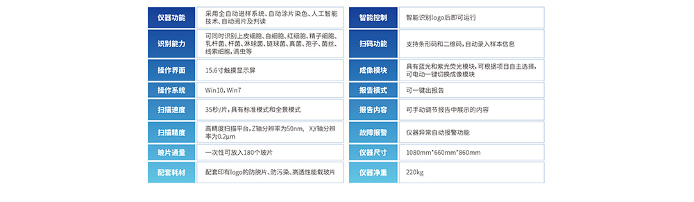 全自动荧光染色智能分析系统为一体机设计,原始管上机,一键出报告。系统包含全自动进样与涂片系统、全自动染色系统、全自动阅片与人工智能分析系统、多重免疫荧光染色液等。可实现阴道分泌物中各组分(包括上皮细胞、白细胞、线索细胞、孢子、菌丝、滴虫、精子细胞、红细胞、链球菌)在RGB图像中高速准确识别,并通过双阈值方法准确自动化得到微生态指标,形态学指标及诊断结果。