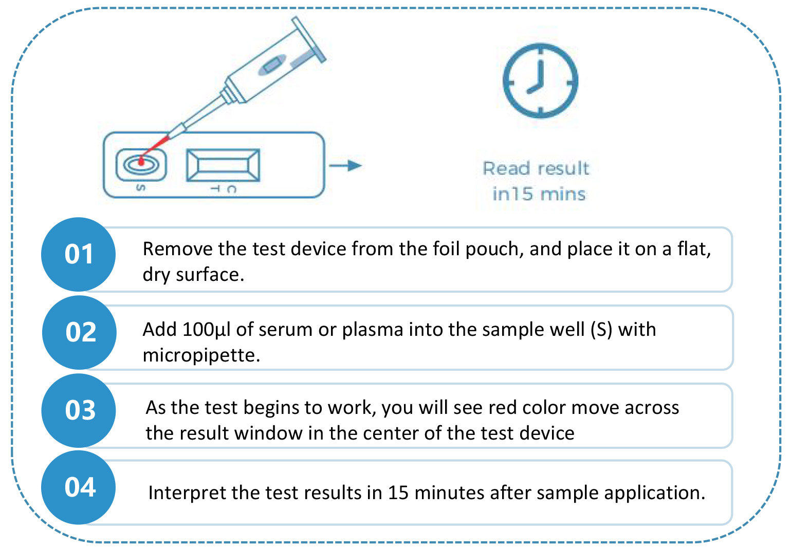 The Rapid Monkeypox Virus Antibody Test Kit is a chromatographic immunoassay for the qualitative detection of antibodies to Monkeypox Virus in human serum or plasma. This test is intended for professional use and may be useful as a complementary technique for the diagnosis of Monkeypox Virus infection.