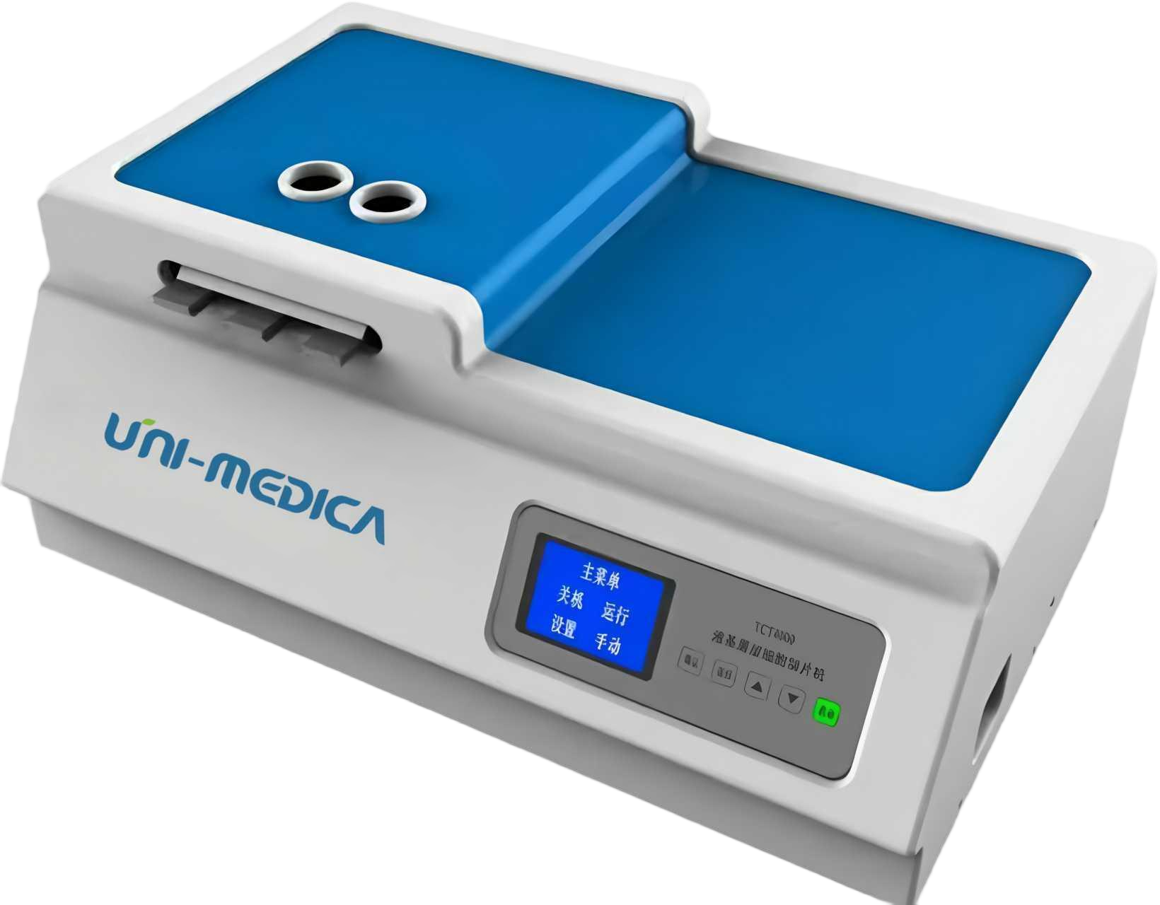 A fully automated slide prep & staining system focusing on liquid-based cytology (LBC) testing, with reversible-chamber slide prep (high cell reten-tion), precision staining(Pap/HE/Customization), anti-clog needles, an-ti-contamination disposable tips & auto waste discharging.